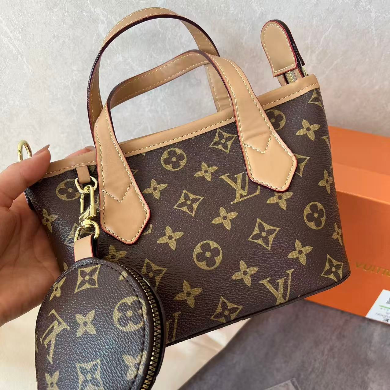 This classic brown monogram bag combines timeless elegance with everyday practicality. Crafted from high-quality materials, it features sturdy handles, precise stitching, and a luxurious finish. Its compact yet spacious design makes it perfect for daily use, effortlessly blending sophistication and functionality at an unbeatable price.